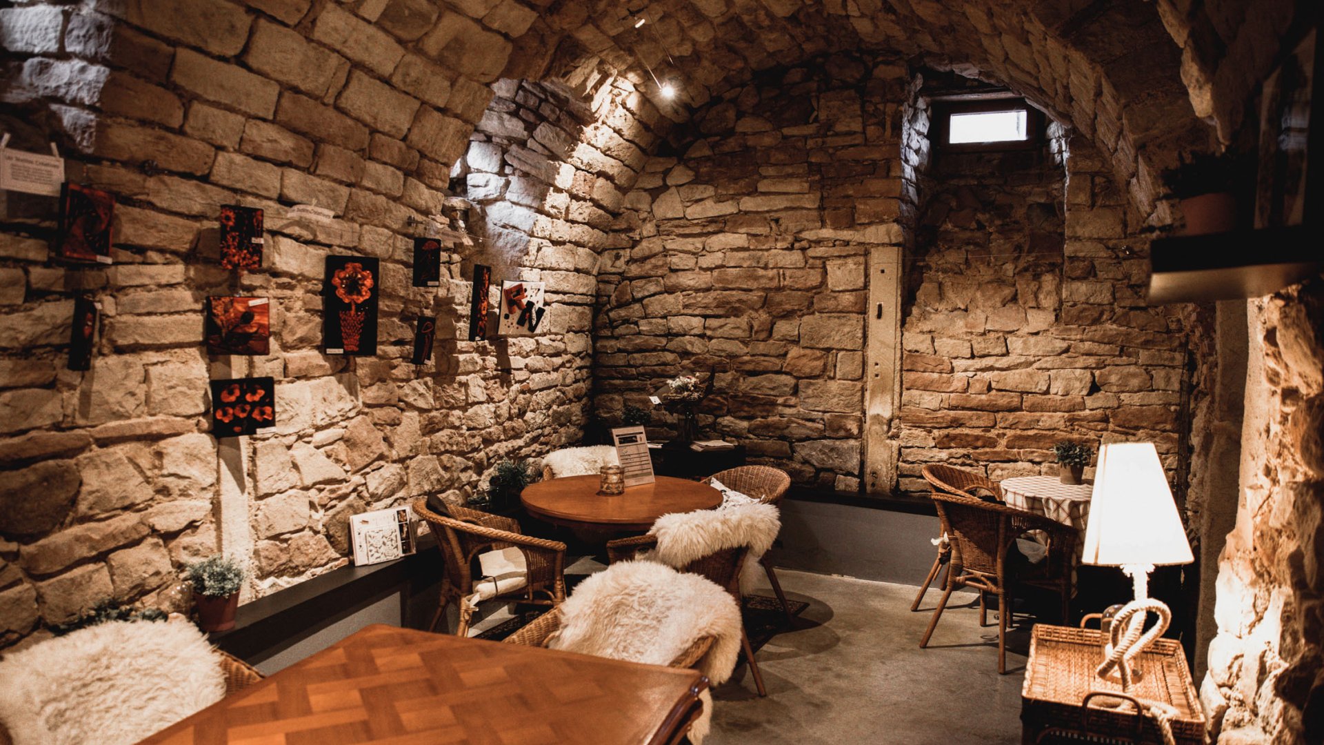 - un moment convivial dans notre salon de thé cosy, niché dans nos caves voûtées.